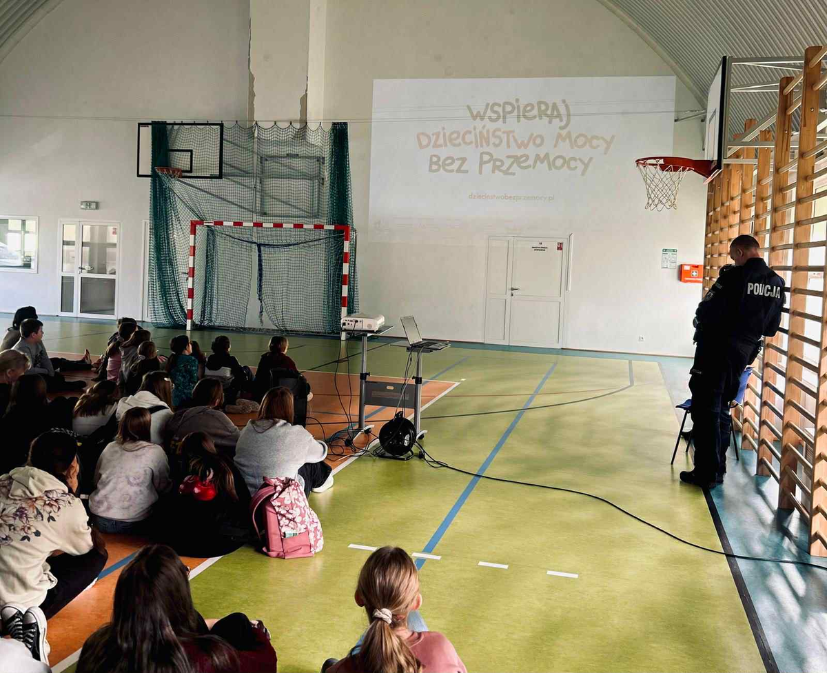 Policjanci i profilaktycy z suwalskiej komendy uczestniczą w zajęciach z uczniami szkół podstawowych. Podczas spotkań omawiają temat bezpieczeństwa oraz przemocy wobec dzieci. Zwracają uwagę na istotne zagadnienia związane z zachowaniami rówieśników, które mogą prowadzić do sytuacji niebezpiecznych. Przekazują w jaki sposób uczniowie powinni reagować w przypadku ujawnienia zachowań przemocowych oraz jak dbać o swoje bezpieczeństwo. Tłumaczą, że cyberprzemoc potrafi zranić osobę i przenieść się do rzeczywistości.