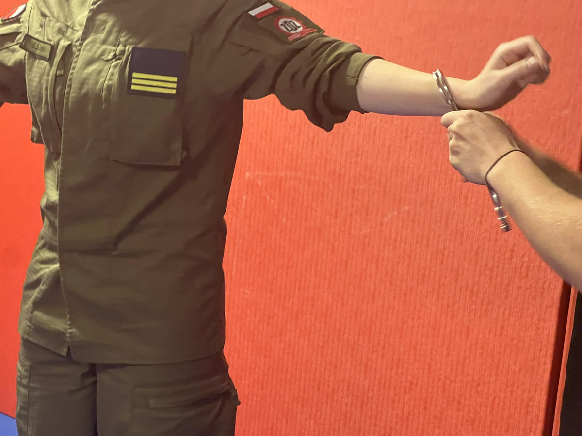 Uczniowie klasy mundurowej z Liceum Ogólnokształcącego ZDZ w Suwałkach spotkali się funkcjonariuszami z Komendy Miejskiej Policji w Suwałkach. Policyjny instruktor przeprowadził zajęcia z technik zakładania kajdanek na ręce. Uczniowie mieli okazję zapoznać się z jednym z najczęściej stosowanych obecnie środków przymusu bezpośredniego przez funkcjonariuszy Policji- kajdankami. Każdego dnia policjanci w trakcie pełnienia swojej służby stosują ten środek jako bezpieczny i prosty w użyciu. W trakcie spotkania uczniowie zadawali wiele pytań. Nie zabrakło również części praktycznej. Młodzież pod czujnym okiem instruktora mogła samodzielnie założyć kajdanki. To właśnie bezpośrednie doświadczenie pozwoliło uczniom jeszcze lepiej zrozumieć, jak istotna i odpowiedzialna jest służba w Policji. Spotkanie było kolejnym ważnym krokiem w rozwijaniu zainteresowań uczniów związanych ze służbami mundurowymi.