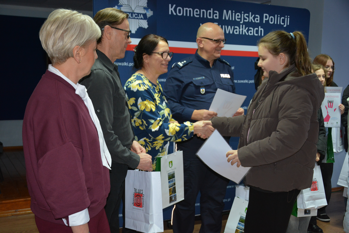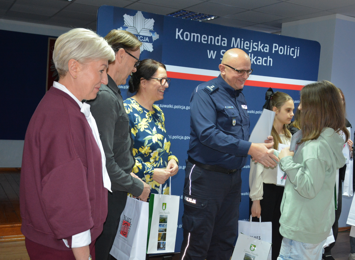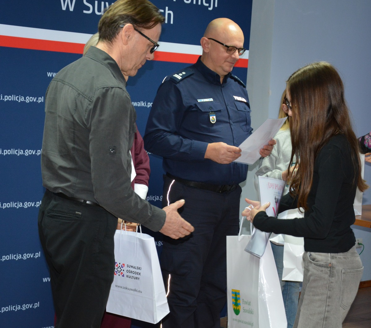 Komenda Miejska Policji w Suwałkach wraz partnerami konkursu: Suwalskim Ośrodkiem Kultury, Starostwem Powiatowym, Gminą Suwałki, Centrum Handlowym Suwałki Plaza ogłosiła konkurs plastyczny. Zadaniem do wykonania było wykonanie pracy dowolną techniką plastyczną, pozwalającą na utrwalenie obrazu na formacie A3 lub A4, dodatkowo powinno zawierać hasło. Celem konkursu było kształtowanie postaw przeciwdziałania przemocy, promowanie szacunku, empatii i komunikacji bez agresji. Przedsięwzięcie skierowane było do uczniów szkół podstawowych, klas IV-VIII. Komisja konkursowa wyłoniła laureatów z 73 nadesłanych prac, aczkolwiek każdemu uczestnikowi z osobna należą się gratulacje za włożony trud i niezwykłą pomysłowość w wykonaniu prac.
