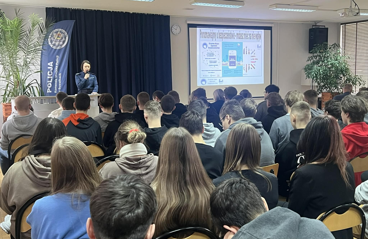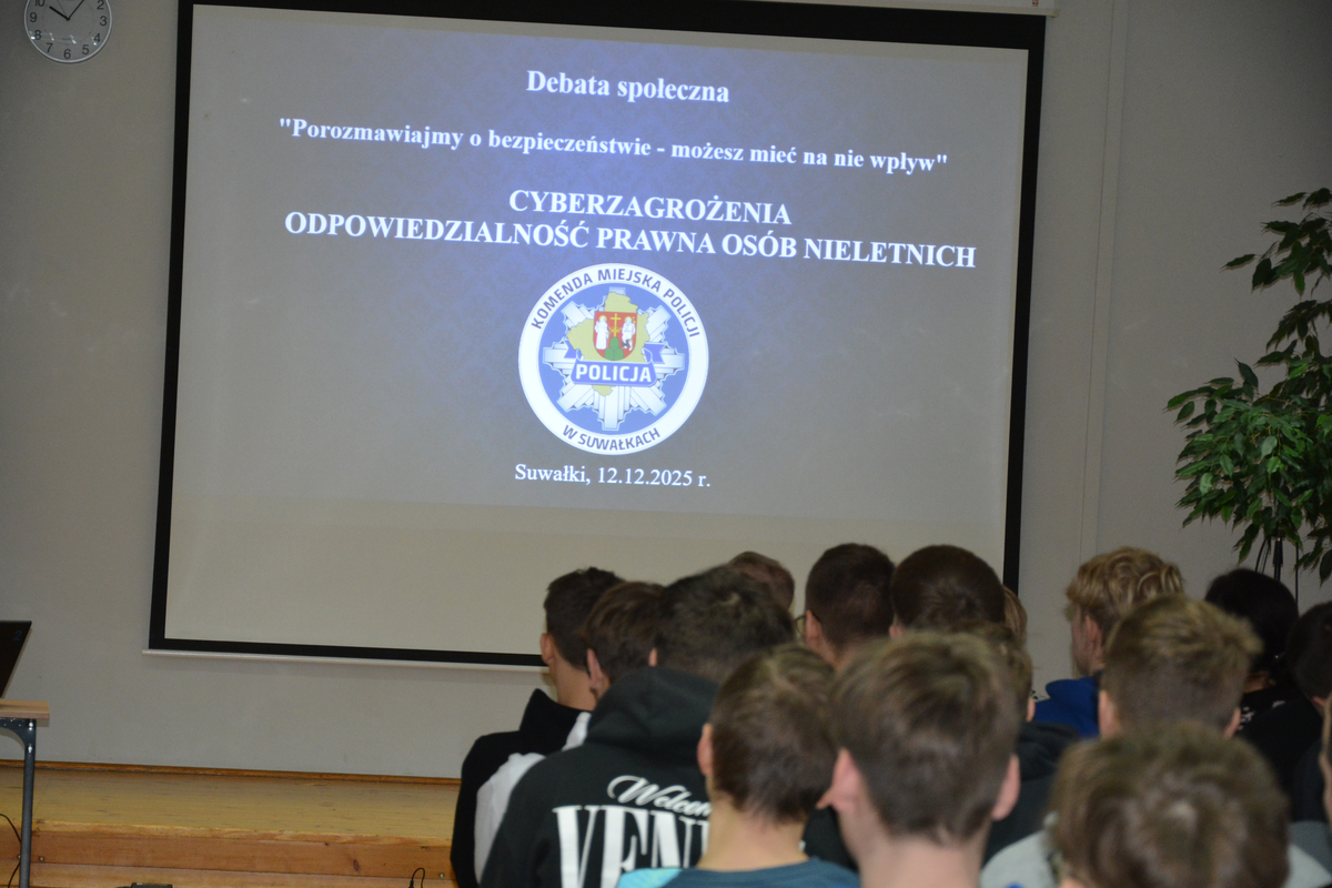 Debata była także okazją do rozmowy z młodymi ludźmi i wymianą doświadczeń. Uczestnicy mogli zadawać pytania, zgłaszać swoje spostrzeżenia i dzielić się opiniami dotyczącymi bezpieczeństwa w Suwałkach. Policjanci podkreślili, że profilaktyka cyberzagrożeń to proces wymagający współpracy wielu podmiotów – policji, szkoły, rodziny i instytucji pomocowych. Tylko wspólne działania mogą skutecznie ograniczyć zagrożenia i przyczynić się do budowania bezpiecznej przestrzeni dla całej społeczności.