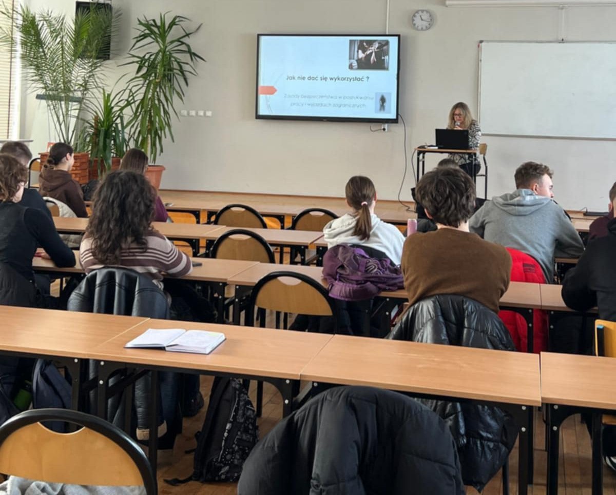 Przedstawiciele suwalskiej Policji zorganizowali kolejną lekcję profilaktyki. Rozmawiali z młodzieżą w ZST w Suwałkach o zjawisku handlu ludźmi i sposobach jego przeciwdziałania.